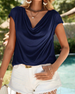 SPECIFICATIONS Top Type: T-shirt Style: Casual Material: Cotton Blends Occasion: Daily Neckline: Cowl Neck Pattern Type: Solid Color Sleeve Type: Bat sleeve Sleeve Length: Short Sleeve Fit Type: Regular Season: Spring,Summer,Fall Package Includes: 1 x T-shirt SIZE TABLE Size Bust Length CM INCH CM INCH S 95 37.40 65 25.59 M 100 39...