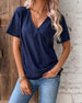 V-Neck Solid Color Casual Short-Sleeved T-Shirt