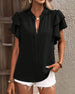 SPECIFICATIONS Top Type: Shirt Style: Casual Material: Cotton Blends Occasion: Daily Neckline: Stand Collar Pattern Type: Solid Color Sleeve Type: Regular sleeve Sleeve Length: Short Sleeve Fit Type: Regular Season: Spring,Summer Details: Hollow Out,Lace Package Includes: 1 x Shirt SIZE TABLE Size Bust Length CM INCH CM INCH S 9...