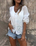 SPECIFICATIONS Top Type: Blouses Style: Elegant Material: Cotton Blends,Lace Occasion: Daily Neckline: V neck_V Pattern Type: Solid Color Sleeve Type: Regular sleeve Sleeve Length: 3/4 Sleeve Fit Type: Regular Season: Spring,Summer,Fall Package Includes: 1 x Blouse SIZE TABLE Size Bust Length CM INCH CM INCH S 95 37.40 65 25.59 M ...
