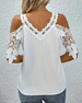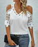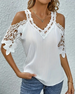 Off-The-Shoulder Lace Solid Color T-Shirt