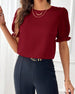 Round Neck Chiffon Jacquard Solid Color Blouse