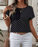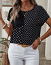 SPECIFICATIONS Top Type: T-shirt Style: Casual Material: Cotton Blends Occasion: Daily Neckline: Round Neck Pattern Type: Polka Dot,Print Sleeve Type: Regular sleeve Sleeve Length: Short Sleeve Fit Type: Regular Season: Summer Package Includes: 1 x T-shirt SIZE TABLE Size Bust Length CM INCH CM INCH S 97 38.19 65 25.59 M 101 3...