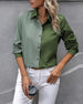 SPECIFICATIONS Top Type: Blouses Style: Casual Material: Polyester Occasion: Daily Neckline: Lapel Pattern Type: Color Block Sleeve Type: Regular sleeve Sleeve Length: Long Sleeve Fit Type: Regular Season: Spring,Summer Details: Buckle Package Includes: 1 x Blouse SIZE TABLE Size Bust Length CM INCH CM INCH S 104 40.94 71 27.95 M ...