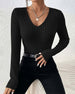 V-Neck Solid Color Elegant Short-Sleeved T-Shirt