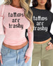 SPECIFICATIONS Top Type: T-shirt Style: Casual Material: Cotton Blends Occasion: Daily Neckline: Round Neck Pattern Type: Letter Sleeve Type: Regular sleeve Sleeve Length: Long Sleeve Fit Type: Skinny Season: Spring,Summer Package Includes: 1 x T-shirt SIZE TABLE Size Bust Sleeves Shoulder Length Waist CM INCH CM INCH CM INCH CM INCH ...