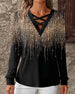 Sequin Panel Long Sleeve Blouse