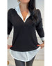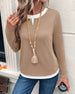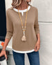 Long-Sleeved Fake Two-Piece Solid Color Top