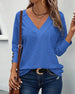 Casual V-Neck Hollow Solid Color Blouse