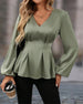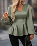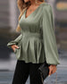 V-neck Puff Sleeve Waist Blouse