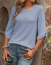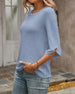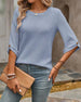 Simple Round Neck Solid Color Blouse