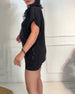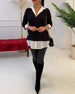 Lapel Black And White Patchwork Top