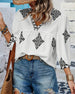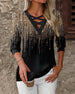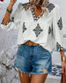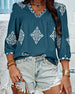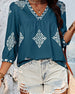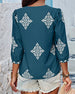 V-Neck Diamond Print Three-Quarter Sleeve Blouse