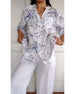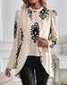 V-Neck Button-Down Printed Blouse