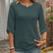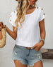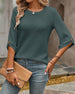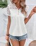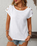 Round Neck Button Cutout Short Sleeve Blouse