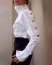 SPECIFICATIONS Top Type: Blouses Style: Casual Material: Cotton Blends Occasion: Daily Neckline: Stand Collar Pattern Type: Solid Color Sleeve Type: Dropped shoulder Sleeve Length: Long Sleeve Fit Type: Regular Season: Fall,Winter Details: Buckle Package Includes: 1 x Blouse SIZE TABLE Size Bust Length CM INCH CM INCH S 97 38.19 ...