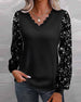 Casual V-Neck Leopard Print Lace Panel Blouse