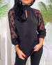 Fashion Solid Color Crochet Lace Sleeve Patchwork Top