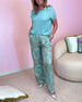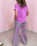Temperament V-Neck Cashew Flower Wide-Leg Set