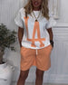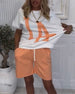 SPECIFICATIONS Style: Casual Top Type: T-shirt Category: Sets Material: Cotton Blends Pattern Type: Letter Neckline: Round Neck Sleeve Type: Regular sleeve Sleeve Length: Short Sleeve Dress Length: Above-knee Pants Type: Conventional Pants Length: Short Waist Type: Mid Waist Fit Type: Regular Season: Spring,Summer Occasion: Daily Package Inclu...