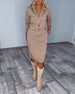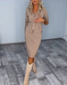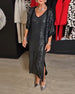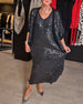 Fashion solid color sequined V-neck slit dress set
