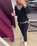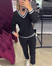 V-neck contrast striped casual suit