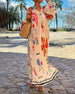 Elegant Three-Quarter Sleeve Printed Waist Dress