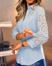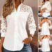 SPECIFICATIONS Top Type: Blouses Style: Casual Material: Lace,Polyester Occasion: Daily Neckline: Lapel Pattern Type: Solid Color Sleeve Type: Regular sleeve Sleeve Length: Long Sleeve Fit Type: Regular Season: Spring,Fall Details: Patchwork Package Includes: 1 x Blouse SIZE TABLE Size Bust Length CM INCH CM INCH S 97 38.19 65 2...