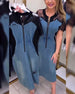 SPECIFICATIONS Style: Casual Material: 65% Cotton, 32% Polyester, 3% Spandex Dress Type: A-Line Dress Length: Midi Neckline: Round Neck Pattern Type: Color Block Sleeve Type: Regular sleeve Sleeve Length: Short Sleeve Details: Pocket,Zipper Fit Type: Regular Season: Spring,Summer Occasion: Daily Package Includes: 1 x Dress SIZE TABLE ...