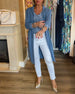 Colorful floral print V-neck three-quarter sleeve casual shirt