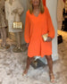 Solid color lantern sleeve V-neck dress