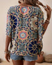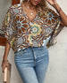 Retro printed V-neck button half sleeve blouse