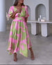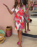 Deep V half-sleeve printed elegant dress