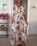 Printed v neck maxi dress