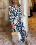 Vintage printed V-neck long-sleeve elegant dress