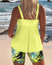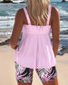 Casual Pocket V-Neck Printed Two-Piece Swimsuit