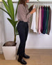 Lapel Three-Quarter Sleeve Contrast Color Blouse
