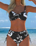 Casual Pocket V-Neck Printed Two-Piece Swimsuit