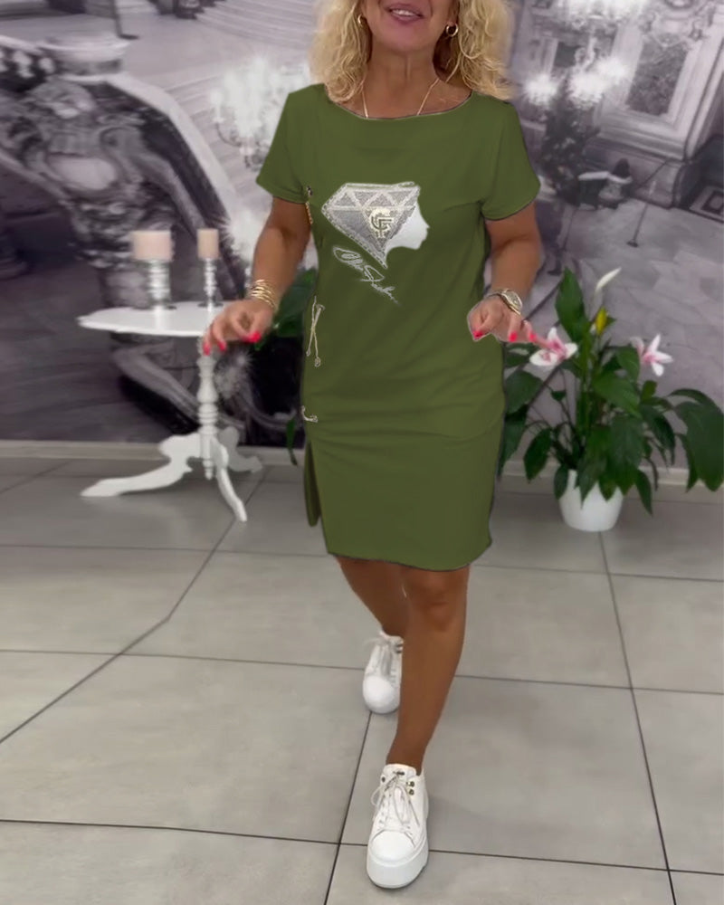 Elegant Three-Quarter Sleeve Printed Waist Dress