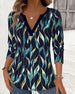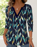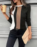 Lapel Three-Quarter Sleeve Contrast Color Blouse