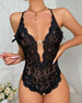 Floral Lace Halter Babydoll Lingerie Dress With Thong