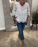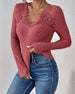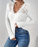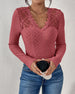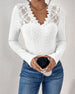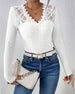 V-Neck Lace Panel Long-Sleeved Top