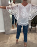 Butterfly Sleeve Round Neck Embroidered Blouse