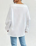 Lapel Three-Quarter Sleeve Contrast Color Blouse