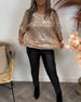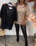 Balloon sleeve round neck sequin top