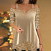 SPECIFICATIONS Top Type: Tops Style: Casual Material: Cotton Blends,Sequins Occasion: Daily Neckline: V neck_V Pattern Type: Sequin,Solid Color Sleeve Type: Regular sleeve Sleeve Length: 3/4 Sleeve Fit Type: Regular Season: Spring,Fall,Winter Details: Patchwork Package Includes: 1 x Top SIZE TABLE Size Bust Length CM INCH CM INCH ...