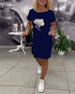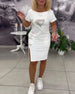 Elegant Three-Quarter Sleeve Printed Waist Dress