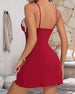 Floral Lace Halter Babydoll Lingerie Dress With Thong