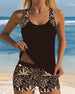 Two-Piece Body-Covering Printed Boxer Swimsuit