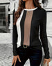 Lapel Three-Quarter Sleeve Contrast Color Blouse